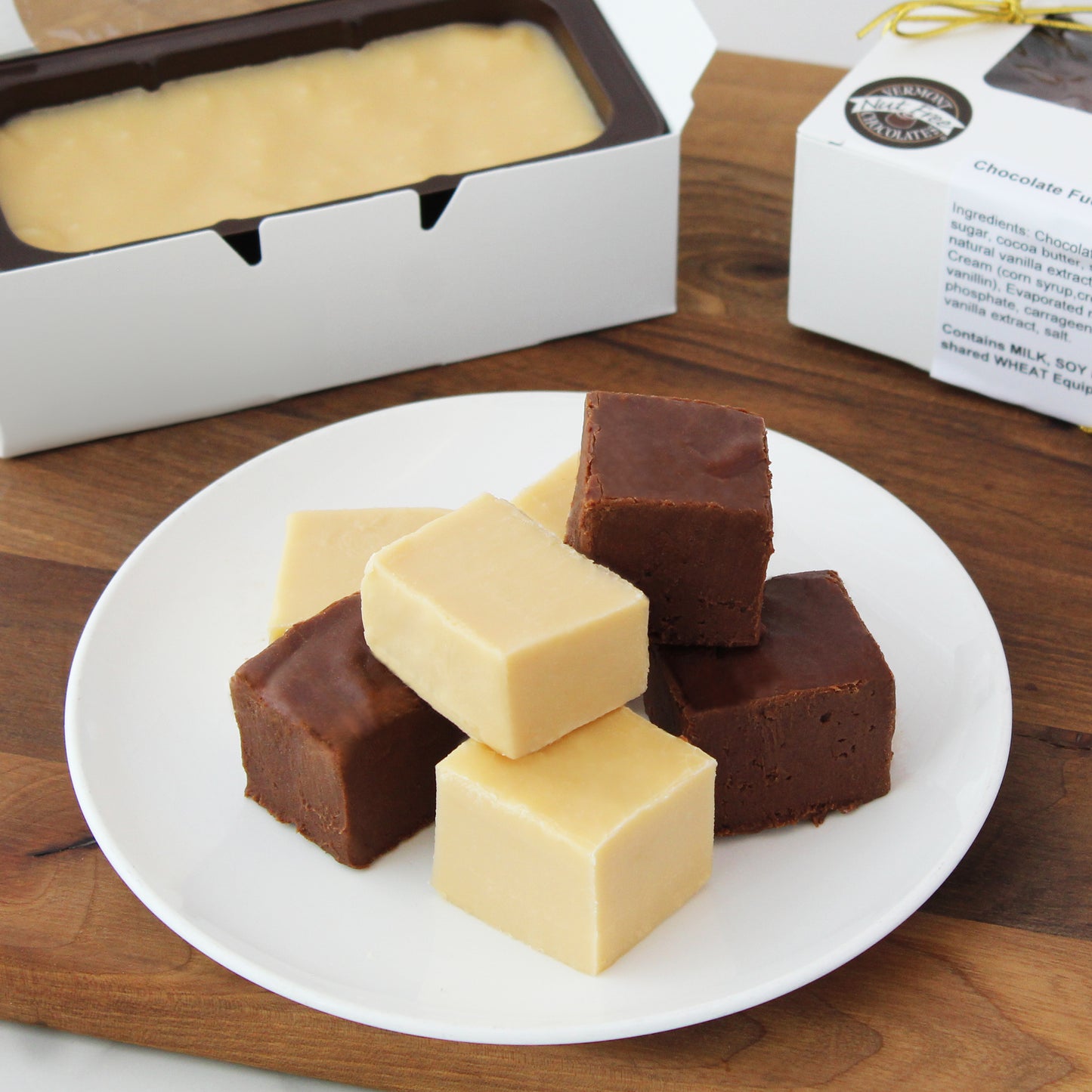 Made in small batches to ensure unparalleled quality, each bite of our fudge delights the senses with its velvety-smooth texture. Choose from two irresistible flavors: our signature maple, made with real Vermont Maple Syrup, or classic chocolate (8 oz).