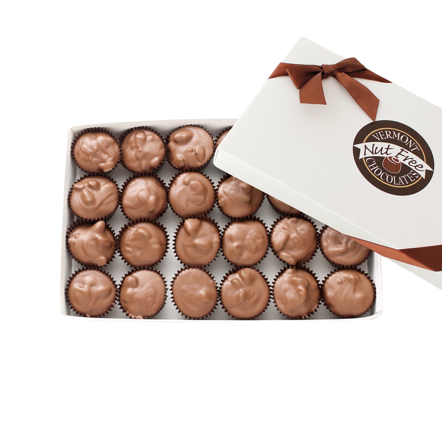 This collection contains our truffles, buttercreams, caramels, crispy cups, and raisin clusters. These confections are hand-rolled, dipped, and decorated by our chocolatiers in our dedicated nut free facility. You can finally enjoy an assorted box of chocolates without fear of cross contamination!
