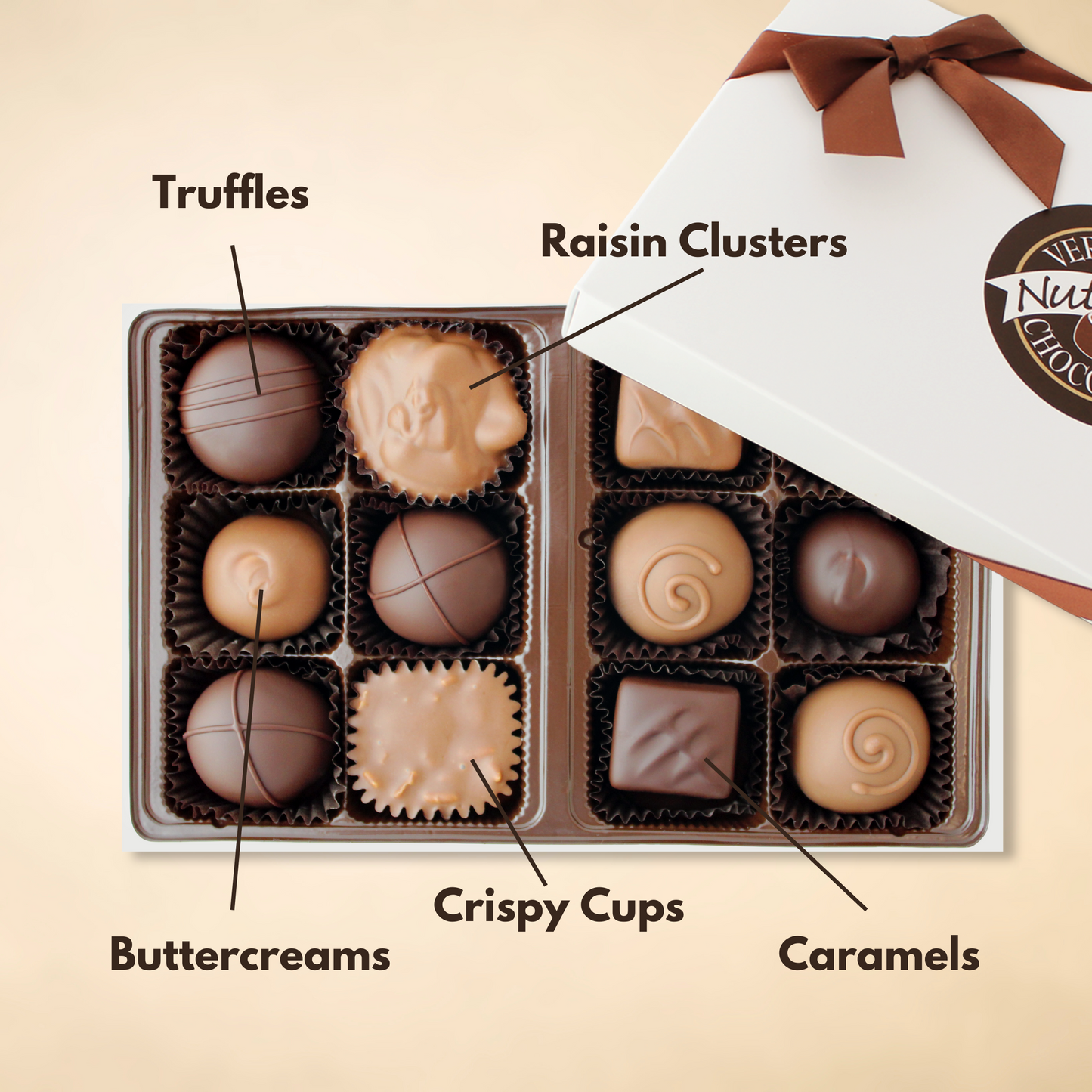 This collection contains our truffles, buttercreams, caramels, crispy cups, and raisin clusters. These confections are hand-rolled, dipped, and decorated by our chocolatiers in our dedicated nut free facility. You can finally enjoy an assorted box of chocolates without fear of cross contamination!
