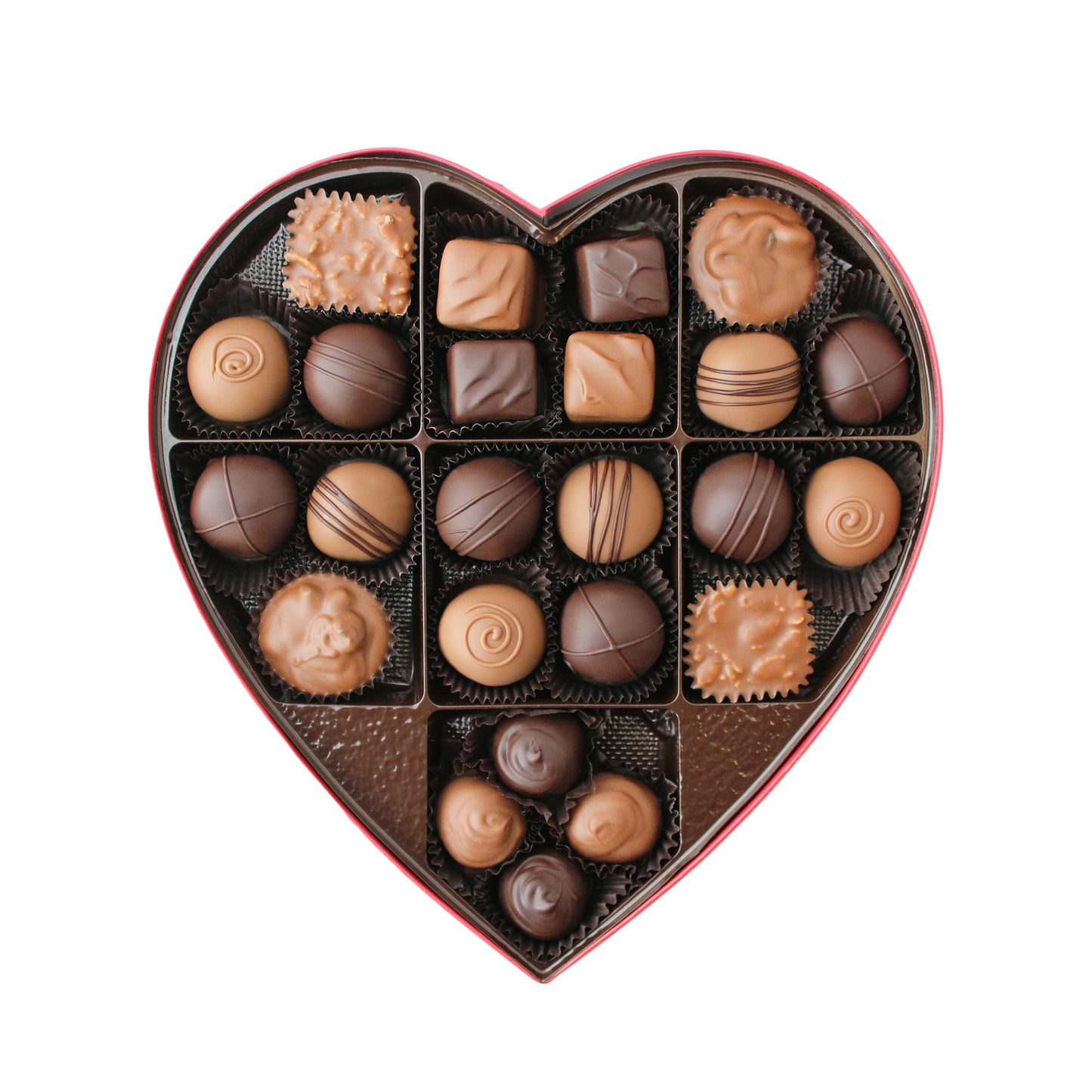 Celebrate love and sweet moments with our Grand Assortments, beautifully packaged in a decorative heart-shaped box and filled with an irresistible selection of our handmade artisan chocolates.